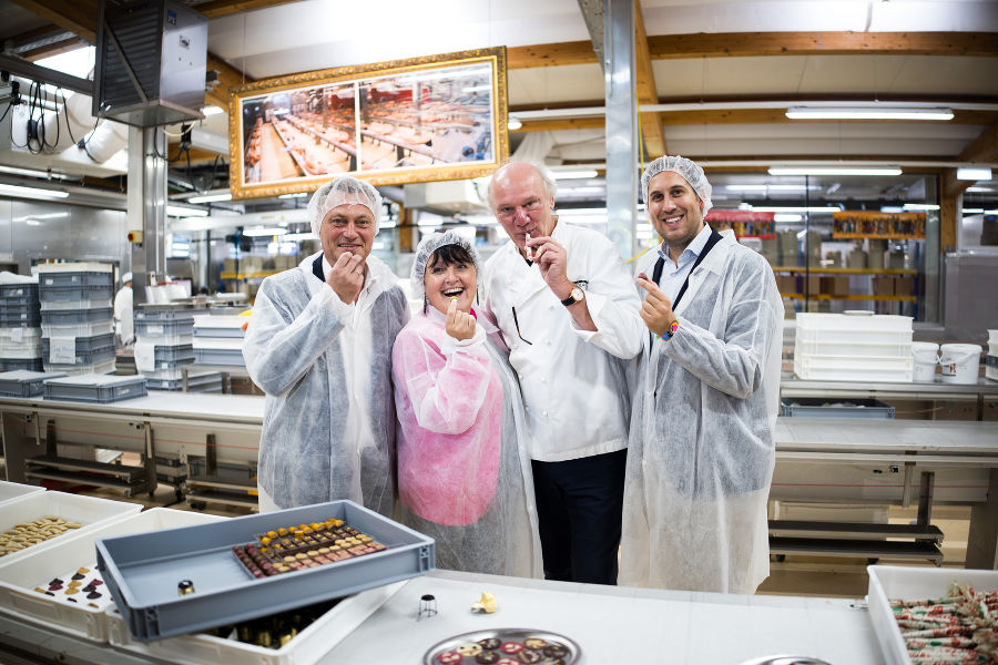LH-Stellvertreterin Manuela Khom und Staatssekretär Alexander Pröll stellten sich in der Schokomanufaktur Zotter der ID Austria-Challenge