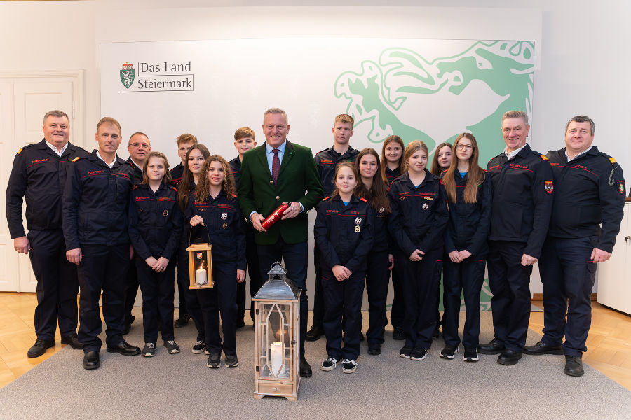 Landeshauptmann Mario Kunasek dankte den Kameradinnen und Kameraden rund um den Landesjugendbeauftragten Mario Leitner für den Besuch: „Ihr, die jungen Mitglieder unserer Feuerwehren, seid ein großartiges Beispiel dafür, dass Gemeinschaft und Verantwortung nicht nur Worte sind, sondern gelebte Wirklichkeit. Ihr zeigt, dass man schon in jungen Jahren bereit sein kann, für andere da zu sein und sich für das Gemeinwohl einzusetzen. Die Feuerwehrjugend ist eine starke Säule unserer Gesellschaft – und ihr zeigt, dass die Zukunft unserer Feuerwehren in den besten Händen liegt. Lasst uns gemeinsam dafür sorgen, dass die Botschaft des Friedens gemeinsam weitergetragen wird – mit Menschlichkeit, Respekt und einem offenen Herzen füreinander. Als Landeshauptmann wünsche ich euch sowie allen Steirerinnen und Steirern Frohe Weihnachten.”