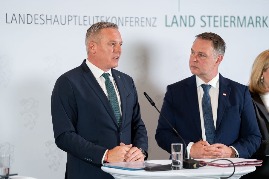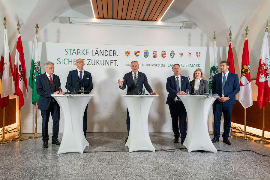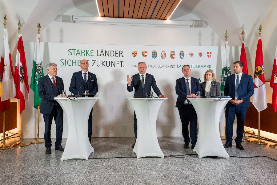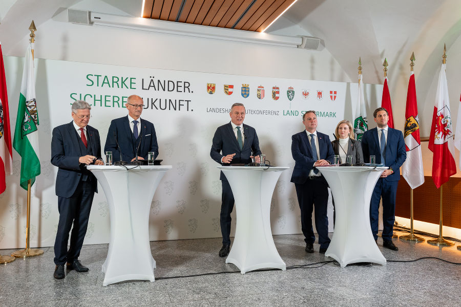 VorlesenSeite druckenDruckenFeedback zu diesem Beitrag verschickenDie Steiermark führt den Vorsitz der Landeshauptleutekonferenz13./14. November 2025: Landeshauptleutekonferenz auf Schloss Seggau in der Südsteiermark Pressekonferenz nach der LH-Konferenz auf Schloss Seggau: LH Mario Kunasek und Vizekanzler Andreas Babler© Land Steiermark/Robert Binder; Verwendung bei Quellenangabe honorarfreiPressekonferenz nach der LH-Konferenz auf Schloss Seggau: LH Peter Kaiser und LH Anton Mattle© Land Steiermark/Robert Binder; Verwendung bei Quellenangabe honorarfreiPressekonferenz nach der LH-Konferenz auf Schloss Seggau: Vizekanzler Andreas Babler, Außenministerin Beate Meinl-Reisinger und Staatssekretär Alexander Pröll.© Land Steiermark/Robert Binder; Verwendung bei Quellenangabe honorarfreiPressekonferenz nach der LH-Konferenz auf Schloss Seggau: Außenministerin Beate Meinl-Reisinger und Staatssekretär Alexander Pröll.© Land Steiermark/Robert Binder; Verwendung bei Quellenangabe honorarfreiPressekonferenz nach der LH-Konferenz auf Schloss Seggau: Außenministerin Beate Meinl-Reisinger und Staatssekretär Alexander Pröll.© Land Steiermark/Robert Binder; Verwendung bei Quellenangabe honorarfreiPressekonferenz nach der LH-Konferenz auf Schloss Seggau: Vizekanzler Andreas Babler und Außenministerin Beate Meinl-Reisinger.© Land Steiermark/Robert Binder; Verwendung bei Quellenangabe honorarfreiPressekonferenz nach der LH-Konferenz auf Schloss Seggau© Land Steiermark/Robert Binder; Verwendung bei Quellenangabe honorarfreiVizekanzler Andreas Babler bei der Pressekonferenz nach der LH-Konferenz auf Schloss Seggau.© Land Steiermark/Robert Binder; Verwendung bei Quellenangabe honorarfreiVizekanzler Andreas Babler bei der Pressekonferenz nach der LH-Konferenz auf Schloss Seggau.© Land Steiermark/Robert Binder; Verwendung bei Quellenangabe honorarfreiPressekonferenz nach der LH-Konferenz auf Schloss Seggau: LH Peter Kaiser und LH Anton Mattle.© Land Steiermark/Robert Binder; Verwendung bei Quellenangabe honorarfreiPressekonferenz nach der LH-Konferenz auf Schloss Seggau: LH Peter Kaiser und LH Anton Mattle.© Land Steiermark/Robert Binder; Verwendung bei Quellenangabe honorarfreiLH Peter Kaiser bei der Pressekonferenz nach der LH-Konferenz auf Schloss Seggau© Land Steiermark/Robert Binder; Verwendung bei Quellenangabe honorarfreiLH Mario Kunasek bei der Pressekonferenz nach der LH-Konferenz auf Schloss Seggau© Land Steiermark/Robert Binder; Verwendung bei Quellenangabe honorarfreiLH Mario Kunasek bei der Pressekonferenz nach der LH-Konferenz auf Schloss Seggau© Land Steiermark/Robert Binder; Verwendung bei Quellenangabe honorarfreiPressekonferenz nach der LH-Konferenz auf Schloss Seggau© Land Steiermark/Robert Binder; Verwendung bei Quellenangabe honorarfreiLH Mario Kunasek bei der Pressekonferenz nach der LH-Konferenz auf Schloss Seggau© Land Steiermark/Robert Binder; Verwendung bei Quellenangabe honorarfreiLH Mario Kunasek bei der Pressekonferenz nach der LH-Konferenz auf Schloss Seggau© Land Steiermark/Robert Binder; Verwendung bei Quellenangabe honorarfreiLH Mario Kunasek bei der Pressekonferenz nach der LH-Konferenz auf Schloss Seggau© Land Steiermark/Robert Binder; Verwendung bei Quellenangabe honorarfreiPressekonferenz nach der LH-Konferenz auf Schloss Seggau: LH Mario Kunasek und Vizekanzler Andreas Babler© Land Steiermark/Robert Binder; Verwendung bei Quellenangabe honorarfreiPressekonferenz nach der LH-Konferenz auf Schloss Seggau© Land Steiermark/Robert Binder; Verwendung bei Quellenangabe honorarfreiPressekonferenz nach der LH-Konferenz auf Schloss Seggau: LH Peter Kaiser, LH Anton Mattle, LH Mario Kunasek, Vizekanzler Andreas Babler, Außenministerin Beate Meinl-Reisinger und Staatssekretär Alexander Pröll (v.l).© Land Steiermark/Robert Binder; Verwendung bei Quellenangabe honorarfreiPressekonferenz nach der LH-Konferenz auf Schloss Seggau: LH Peter Kaiser, LH Anton Mattle, LH Mario Kunasek, Vizekanzler Andreas Babler, Außenministerin Beate Meinl-Reisinger und Staatssekretär Alexander Pröll (v.l).© Land Steiermark/Robert Binder; Verwendung bei Quellenangabe honorarfreiPressekonferenz nach der LH-Konferenz auf Schloss Seggau: LH Peter Kaiser, LH Anton Mattle, LH Mario Kunasek, Vizekanzler Andreas Babler, Außenministerin Beate Meinl-Reisinger und Staatssekretär Alexander Pröll (v.l).© Land Steiermark/Robert Binder; Verwendung bei Quellenangabe honorarfreiPressekonferenz nach der LH-Konferenz auf Schloss Seggau: LH Peter Kaiser, LH Anton Mattle, LH Mario Kunasek, Vizekanzler Andreas Babler, Außenministerin Beate Meinl-Reisinger und Staatssekretär Alexander Pröll (v.l).© Land Steiermark/Robert Binder; Verwendung bei Quellenangabe honorarfreiBundeskanzler Christian Stocker nahm per Video-Zuschaltung an der LH-Konferenz auf Schloss Seggau teil© Land Steiermark/Robert Binder; Verwendung bei Quellenangabe honorarfreiBundeskanzler Christian Stocker nahm per Video-Zuschaltung an der LH-Konferenz auf Schloss Seggau teil© Land Steiermark/Robert Binder; Verwendung bei Quellenangabe honorarfreiLH-Konferenz auf Schloss Seggau in der Südsteiermark.© Land Steiermark/Robert Binder; Verwendung bei Quellenangabe honorarfreiLH-Konferenz auf Schloss Seggau in der Südsteiermark.© Land Steiermark/Robert Binder; Verwendung bei Quellenangabe honorarfreiLH-Konferenz auf Schloss Seggau in der Südsteiermark.© Land Steiermark/Robert Binder; Verwendung bei Quellenangabe honorarfreiLH-Konferenz auf Schloss Seggau in der Südsteiermark.© Land Steiermark/Robert Binder; Verwendung bei Quellenangabe honorarfreiLH-Konferenz auf Schloss Seggau in der Südsteiermark.© Land Steiermark/Robert Binder; Verwendung bei Quellenangabe honorarfreiLH-Konferenz auf Schloss Seggau in der Südsteiermark.© Land Steiermark/Robert Binder; Verwendung bei Quellenangabe honorarfreiLH Mario Kunasek bei einem Interview im Rahmen der LH-Konferenz auf Schloss Seggau in der Südsteiermark.© Land Steier